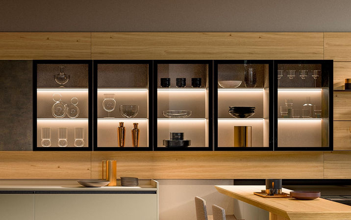Il s’agit d’un système modulaire qui, grâce aux profils en aluminium, vous permet d’utiliser des panneaux de différentes finitions donnant une continuité entre les meubles bas et les meubles hauts ou même devenir une solution à part entière.